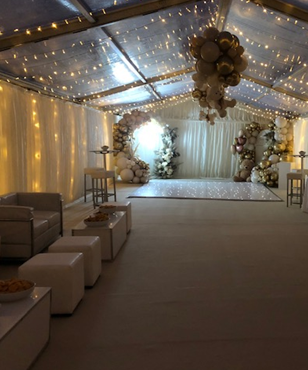 To completely transform the inside of your chosen marquee, we have a wide range of interior linings in various colour combinations and designs – from traditionally pleated through to blackout or starlight themes.
